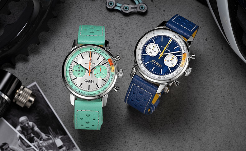 そして今、ブライトリングが、コッピとバルタリがスポーツと社会に刻んだ不朽の功績を称え、2つのトップタイム リミテッドエディションを発表しました。彼らの自転車やジャージから着想を得た鮮やかなカラーを纏い、これらのタイムレスなモダン クロノグラフは、伝説の物語を華やかに蘇らせます。
