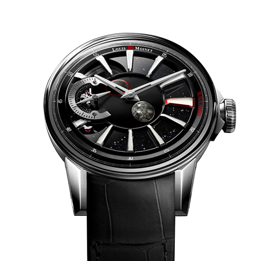 2024新作 122年に1日の誤差、2種類の月の隕石が正確に回転し満・新月を示す高精度の新型キャリバー搭載。ルイ モネ「ブラック ムーン」が世界限定60本で登場