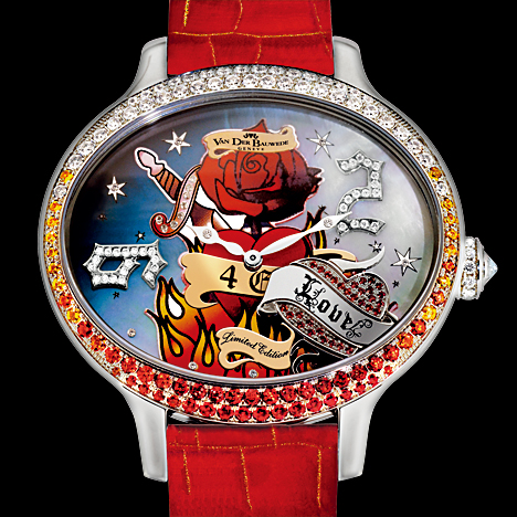 仕様:ダイアル表面に可動型Loveモチーフ、ベゼルにサファイア、ダイヤ装飾