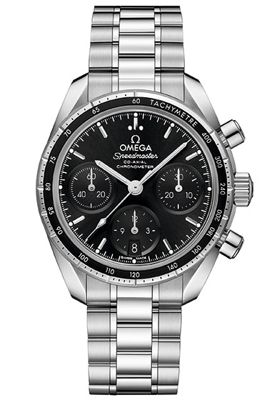 手頃なサイズの38mmケースを持ったユニセックス向けのスピードマスター。デュアルベゼルを採用し、外周部には、タキメータースケールと対応したドットスケールがあしらわれています。スピードマスターのフォルムと伝統を核にしながら38mmという小ぶりのサイズに、洗練された美しさを備えたモデルです。