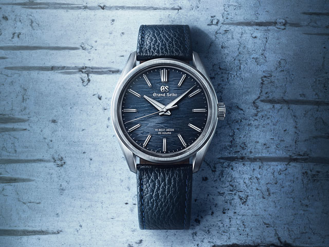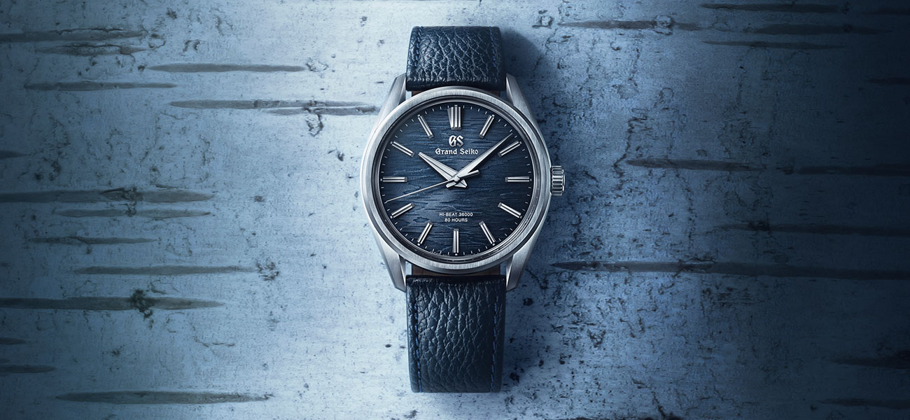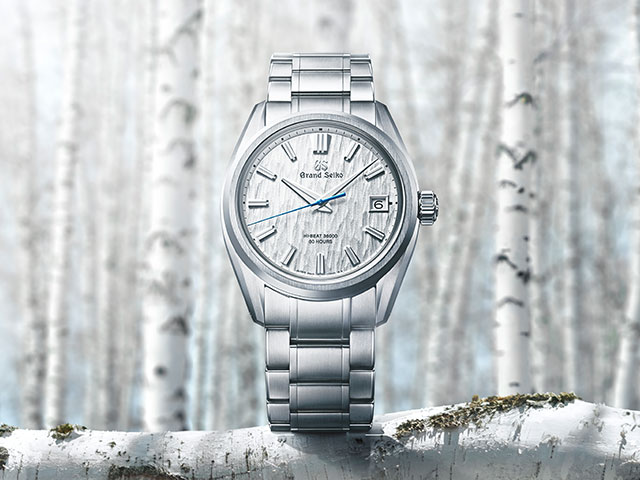機械式モデルのSLGH005はハイビートムーブメントによる力強い秒針の動きに合わせるように、型押しを7度重ねることで白樺の模様を立体的に仕上げた。スプリングドライブモデルのSLGA009は、スーッと音もなく流れるスイープ運針の秒針に合わせて白樺の模様もより繊細に表現している。同じ白樺のモチーフであっても、時計の製造地やムーブメントの特性に応じて表現を変える。その探求心によって、グランドセイコーはさらに魅力を深めていくのだ。