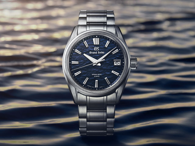 デザイナーは頻繁にふたつの製造地に足を運ぶが、その移動中に窓からふと目にした景色がデザインのヒントになることもあるそうだ。その一例が、そよ風に揺らぐ諏訪湖の湖面をダイヤルで表現した「エボリューション9 コレクション SLGA021」だ。深いネイビーブルーの色で表現された穏やかな水面は、パワースポットの諏訪大社や自然現象の御神渡りで知られる諏訪湖の神秘性とも結びつき、時計に更なる魅力を加えてくれる。