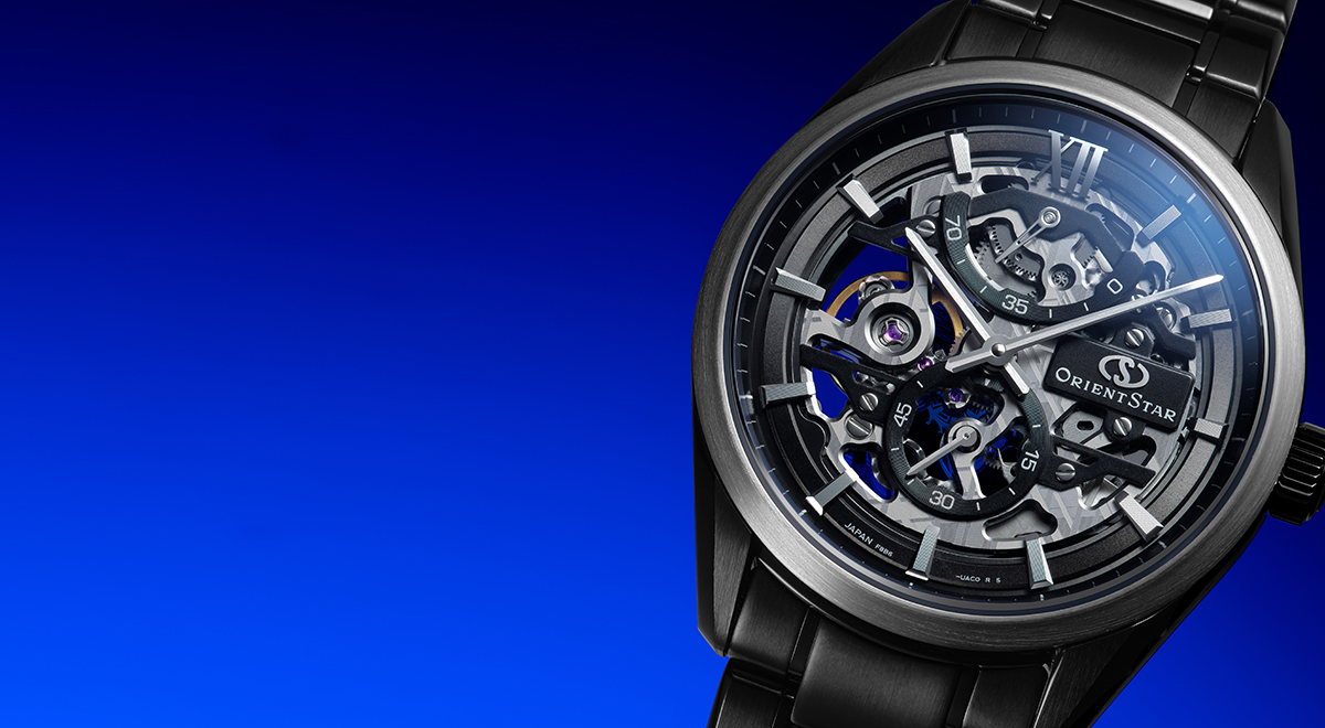 そのひとつが「M34 F8 スケルトン ハンドワインディング」の75周年記念モデルだ。ベースとなったのは2022年に発売された同名のレギュラーモデル(発売当時は「コンテンポラリー スケルトン」)で、このモデルではオリエントスターの象徴でもあるスケルトンデザインに加え、フランスの天文学者シャルル・メシエによる星雲、星団、銀河のカタログをヒントにしたMコレクションズのコンセプトも取り入れ、先鋭的なイメージに仕上げている。