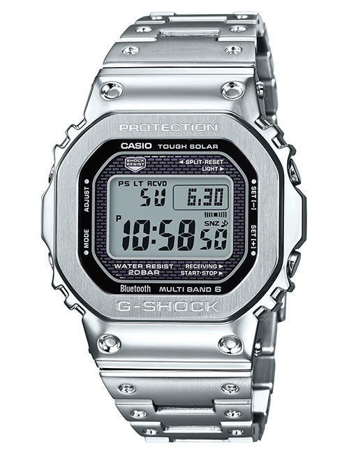 G-SHOCKの原点であるDW-5000をベースにフルメタル化を実現。ベゼル、バンドへ硬質なステンレス素材を採用。フルメタルケースでも耐えうる新たな耐衝撃構造を開発。