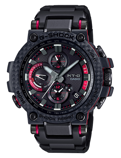 メタルと樹脂を融合した耐衝撃ボディにスマートフォンリンク機能や電波ソーラーを搭載。 ベゼルには軽量かつ高剛性が特徴のカーボン素材を採用。