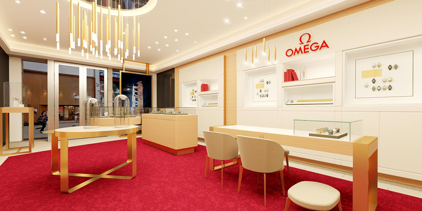 売場は、オメガの最新グローバル・コンセプトに基づいて設計。