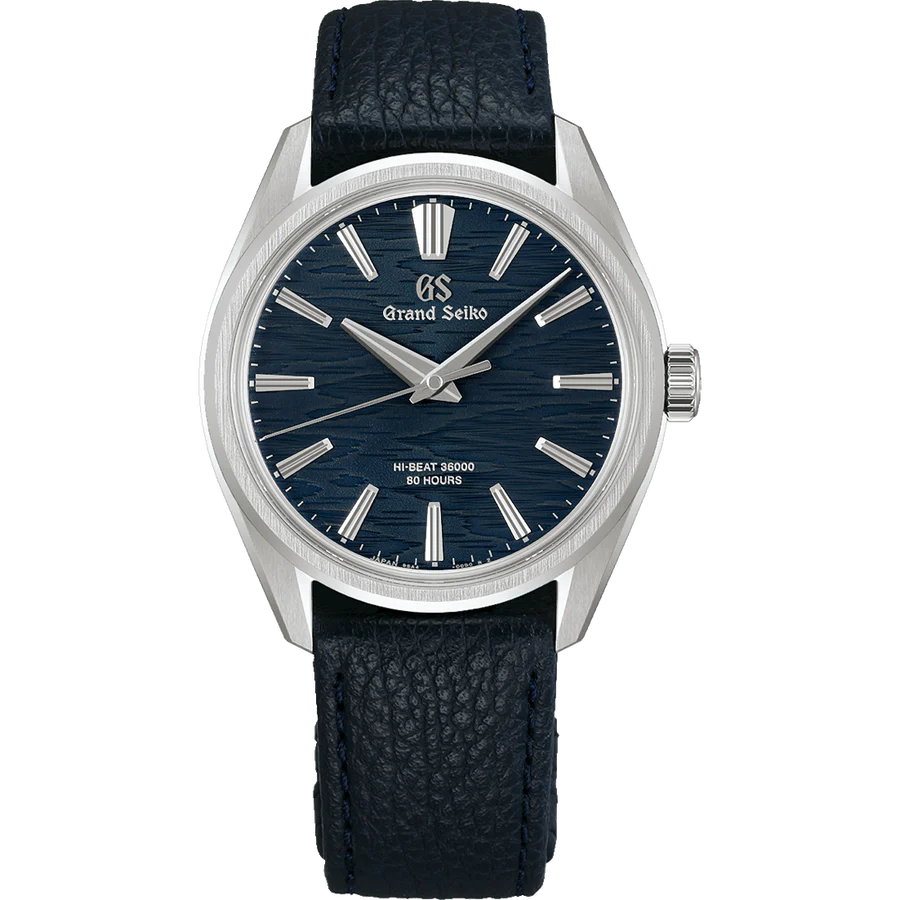 グランドセイコーの真髄と日本の美意識を高い次元で融合させた独自のデザイン文法「エボリューション9スタイル」をベースにした、10振動手巻メカニカルウオッチです。ネイビーカラーのダイヤルは、月あかりに照らされた白樺の樹皮をイメージしました。ステンレススチール製のケースは厚さ9.95mmと薄型に仕上げ、すっきりとしたインデックスやベゼル、ラグの幅が、グランドセイコーのドレスウオッチにふさわしい繊細で優美なる存在感を演出。ムーブメントには、安定した精度につながる毎秒10振動という高い振動数と、最大80時間もの長い持続時間を実現する「キャリバー9SA4」を搭載しています。