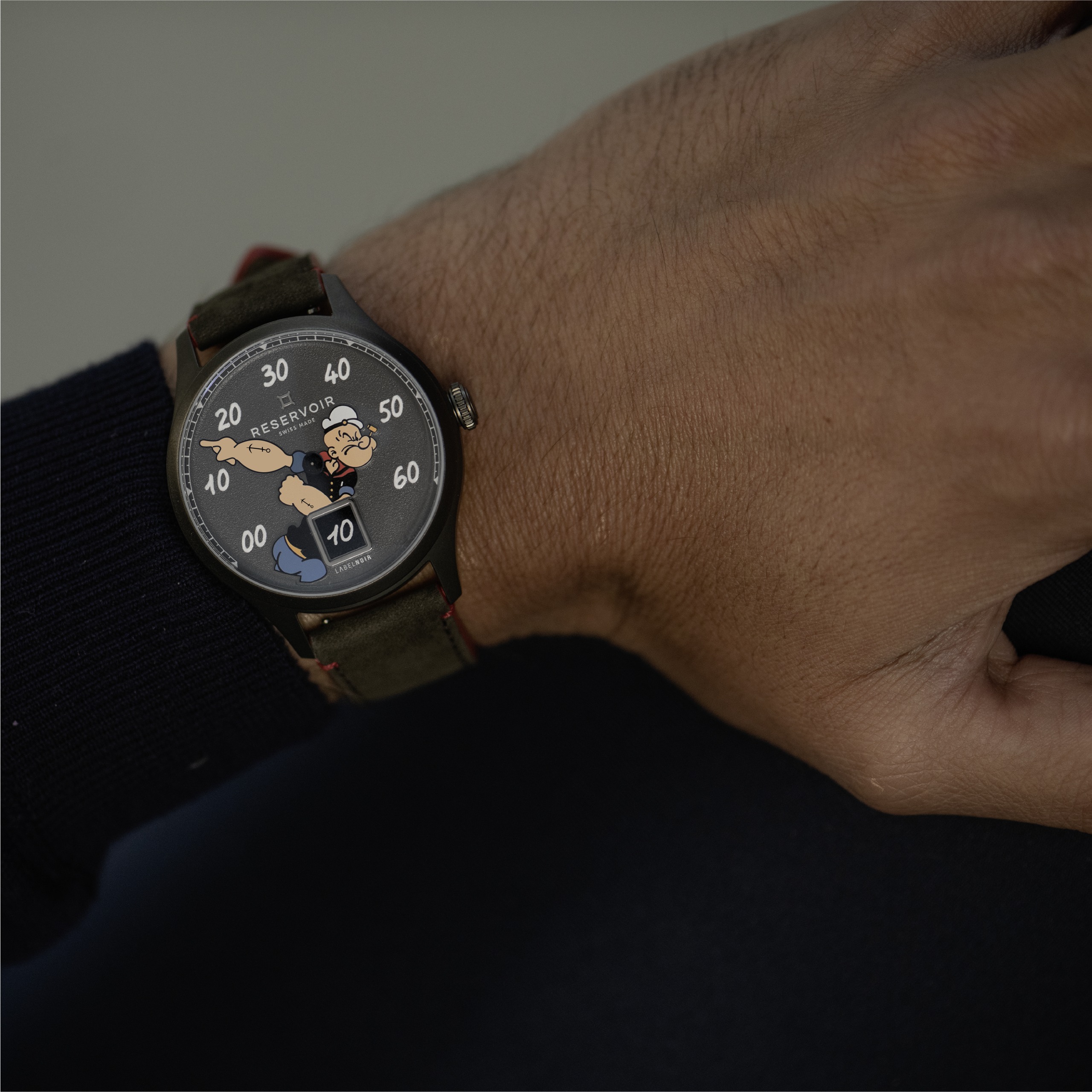 レゼルボワールとラベルノワールとのコラボレーションにより誕生したこの200本限定モデルは、有名な漫画のキャラクター、「ポパイ」をモチーフにしたもので、ノスタルジックなアイコンを洗練されたファッションで手首にもたらします。