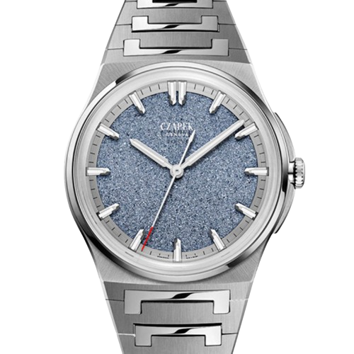 【チャペック】は1839年にパテック・フィリップの創業者の一人であるアントワーヌ・ノルベール・ド・パテックと共に、「Patek, Czapek & Cie」を共同運営し、当時の時計製造についてはチャペックが担当しており、ナポレオン3世の御用達となるなど高い評価を受けました。2012年にブランドが復活し、現代の時計製造技術で再興され、生み出された時計は現代の時計愛好家たちに評価されております。 代表モデルである【アンタークティック】は、世界中のオーダーが殺到し、現在に至るまで供給が間に合わないほどの人気を博します。高級時計で見られるインワード・アングルのテクニックと最先端のレーザーによるエングレービングが融合したブリッジの信じられないほどの仕上げに見ることができます。そんな仕上げを見ることができるシースルーバックは、マイクロローターを採用しており、当初18Kゴールド製で少し小さかったが、プラチナを採用した少しサイズアップされました。ボール・ベアリングを変更することで、輪列の伝達効率を引き上げ約60時間のパワーリザーブも実現することができました。自動巻においてシースルーバックからムーブを覗かせるためには、ローターを小さくさせることを考え、プラチナ950製に変えることで比重の重い金属を使い、ボールベアリングを変更することで、巻き上げ効率を徹底して改良しています。ブレスレットはクイックチェンジ・システムを備えているため、時計のオーナーは、ダイアルと同じ台形のパターンで装飾されたラバー・ストラップに素早く簡単に取り換えることができます。 【フローズンスターS】は、深い青みがかった灰色のような銀色の輝きを放ち、他の材料では再現できない独特の表面テクスチャーを作り出しています。マテリアルはオスミウムを使用しており、主に白金鉱石に微量な元素として見られ、最も密度の高い天然元素であり、非常に希少な金属です。非常に加工が難しいとされるオスミウムを使用した世界でたったの38本しかない限定モデルです。 なくなり次第終了となります、ご検討はお早めに!