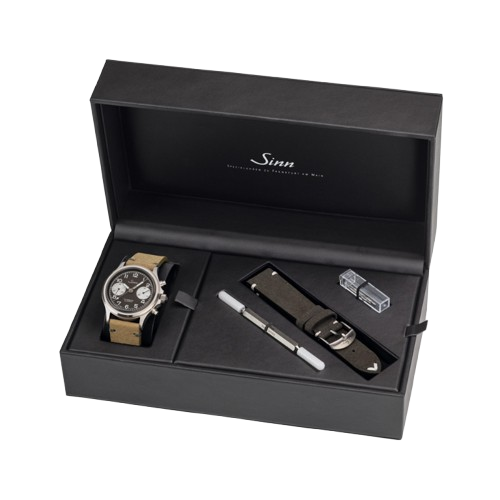 【Sinn】は特殊オイル66-228・Arドライテクノロジー・ハイドロシステム・マグネチックフィールドプロテクション・テギメント加工など、様々な技術を用い、視認性、機能性を最重要視したプロユースのドイツ製腕時計です。 クロノグラフモデルの代表作【356】はFLIEGERシリーズとしてとても人気です。パイロット系クロノグラフとしての視認性も抜群で、ミリタリー要素も抑えめとなっています。 【356.FLIEGER.KLASSIK.JUB】はシリーズ生誕25周年のアニバーサリーモデルです。初代356と同様にハイドーム風防を採用しているが、アクリルからサファイアクリスタルへアップグレードされています。アンスラサイトダイヤルに配置されたバイコンパックスの2カウンターにはシルバーカラーでクラシック感を演出しております。世界限定500本の希少な一品です。 是非ご試着にご来店ください!