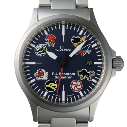 【Sinn】は特殊オイル66-228・Arドライテクノロジー・ハイドロシステム・マグネチックフィールドプロテクション・テギメント加工など、様々な技術を用い、視認性、機能性を最重要視したプロユースのドイツ製腕時計です。 SINNといえば【556】といわれるほどの代表作! 『ファントムおじいちゃん無頼』の漫画で知った方もいらっしゃるかもしれませんが、半世紀もの間 日本の空を守ってきたジェット戦闘機F-4ファントムⅡが、日本での退役を迎えました。そんな日本の空自の顔である『ファントム』を称えて、ドイツのSINNが日本向けに限定を作りました。大空をイメージしたネイビーカラーに、航空自衛隊 飛行8部隊のマークを配置。ローターにはファントム公認キャラクター「スプーク(Spook)」200本だけの特別モデルです。 なくなり次第終了となります、ご検討はお早めに!