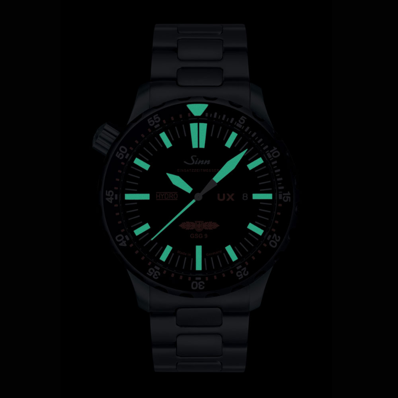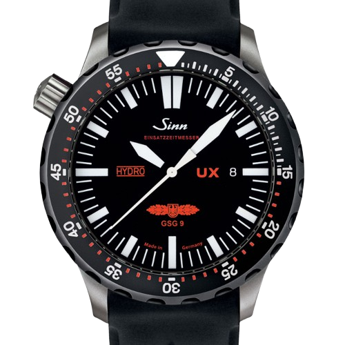 【Sinn】は特殊オイル66-228・Arドライテクノロジー・ハイドロシステム・マグネチックフィールドプロテクション・テギメント加工など、様々な技術を用い、視認性、機能性を最重要視したプロユースのドイツ製腕時計です。 【UX】はEZM2(最悪の状況下でも完璧な視認性を維持し、可能な限り大型の文字盤を備え、はずれたり片側に傾くことのない回転ベゼルを搭載した時計)の進化モデルです。特殊なオイルを封入するSinn独自のハイドロ・テクノロジーで5,000mという驚異的な防水性能を持ち合わせています。 UシリーズのケースはすべてUボートスチールを採用しております。海水耐性・反磁気性・ひび割れ耐性をもっています。【UX.SDR.GSG9】は、特殊結合方法で固定された回転ベゼルは強い衝撃でも外れず、ハイドロ・テクノロジーは特殊なオイルを封入し防水性を5,000mまで高めあらゆる角度からの視認性も高くなりました。 是非ご試着にご来店ください!