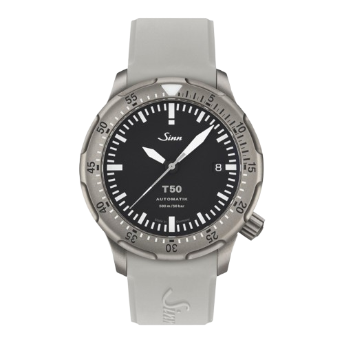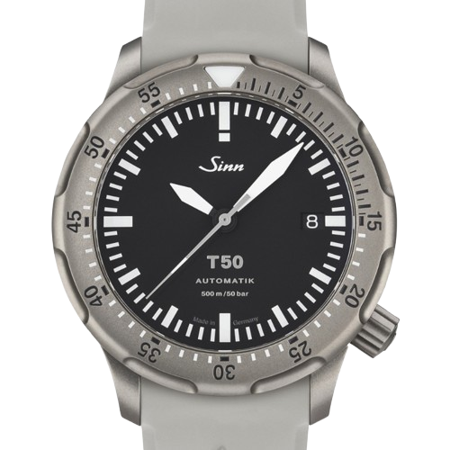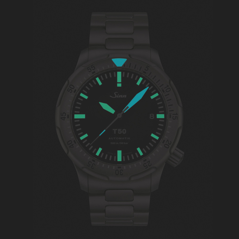 【Sinn】は特殊オイル66-228・Arドライテクノロジー・ハイドロシステム・マグネチックフィールドプロテクション・テギメント加工など、様々な技術を用い、視認性、機能性を最重要視したプロユースのドイツ製腕時計です。 【T50】は、特殊結合方式逆回転防止ベゼルで不意の衝撃でも外れることがないです。また誤操作防止に押して回さなければ回転しない構造を採用しています。夜光処理は色分けし暗所でも誤認しないように配慮しています(時針・ダイヤル・インデックス:グリーン、分針・秒針・ベゼルメインマーク:ブルー)。 高強度チタン製ケースで軽量化、傷がつきやすいベゼルにはテギメント加工を採用、防水も50気圧とダイバーズウォッチとしてのハイスペック機能を持ち合わせています。 是非ご試着にご来店ください!