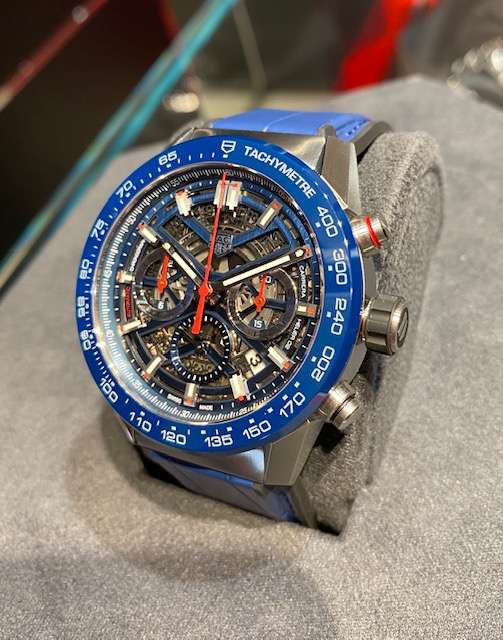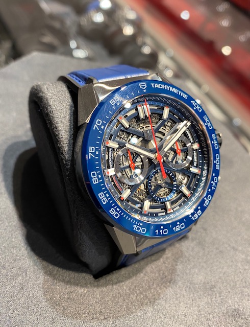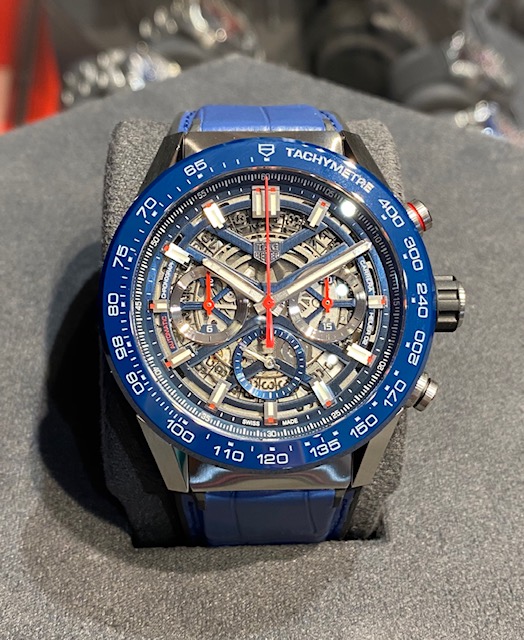 人気モデル ”カレラ ホイヤー02"シリーズの鮮やかなブルーカラーモデルです。