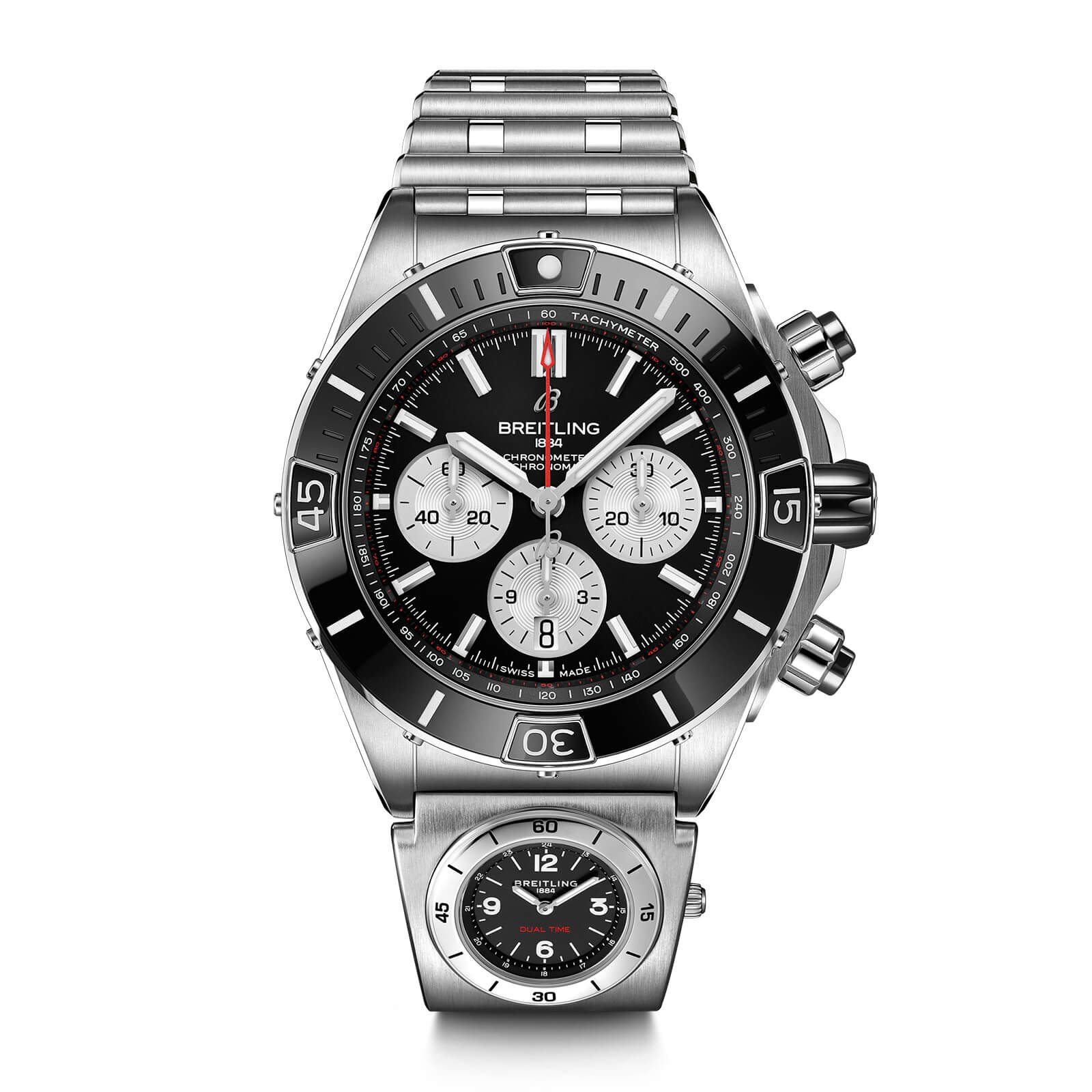 スーパー クロノマットは、1980年代にブライトリングがイタリア空軍の曲技飛行隊名手のために製作したオリジナルのクロノマットにインスパイアされています。