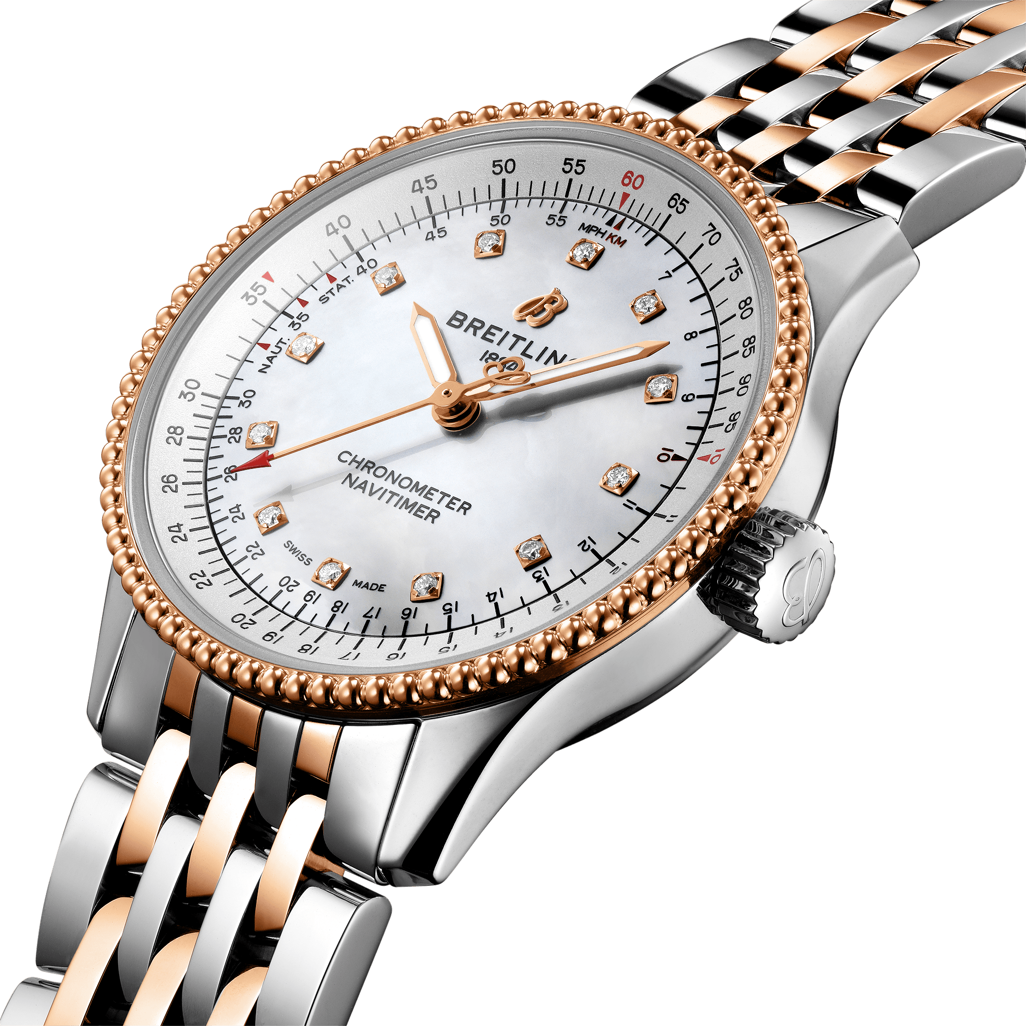 ナビタイマーオートマチック35は、ブライトリングのフラッグシップモデルであるナビタイマーのレディースモデルとなります。