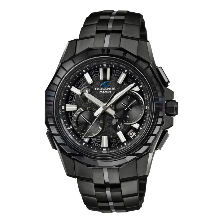 OCEANUS Manta(オシアナス マンタ)ラインから、ガリウムタフソーラー搭載の数量限定モデルです。 江戸切子の職人による手作業のカッティングラインのサファイアガラスベゼルが特徴です。 デザインテーマは「CALM NIGHT」。 月の光に照らされた夜の海を、DLC処理したチタン外装と江戸切子のサファイアガラスベゼルで表現しました。 硬いサファイアガラスに幅、深さを均一に施す江戸切子は、高い技量が求められます。一つひとつ手作業で切り込みを入れ、江戸切子ならではの煌めきとシャープな美しさが魅力です。 また、月面の凹凸や陰影をモチーフに型打ちを施したメタル素材のテクスチャーダイアルを採用。発電効率を飛躍的に向上したガリウムタフソーラーの搭載により、独自性あるフェイスデザインと、金属文字板で質感を高めています。