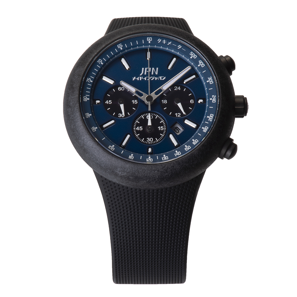 JPNの外観マテリアルには、最高峰レーシングカーに実際に使用されているカーボンやチタニウム、ポリカーボネートを採用しました。心臓部には、高精度で定期的な電池交換不要、環境にもやさしい、ソーラー駆動式クォーツムーブメントを搭載しています。