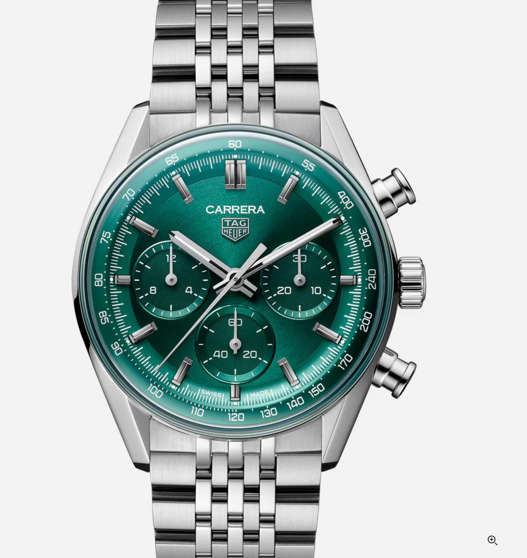 洗練されたデザインとハイパフォーマンスを兼ね備え、エレガントでありながら力強い存在感を放つ41mmのタグ・ホイヤー カレラ クロノグラフ。サーキュラーサテン仕上げを施したグリーンダイヤルが現代的なスタイルならではの魅力を放ち、約80時間のパワーリザーブを誇る自社製自動巻キャリバーTH20-01が、高い精度と耐久性を約束します。