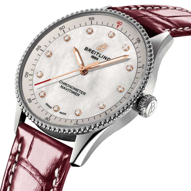 ナビタイマーコレクション初の32㎜ケースとクォーツムーブメントによってこれまで以上に女性にお使いいただきやすいモデルが登場いたしました!