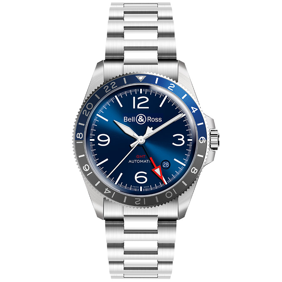 ベゼルにブルー/グレーのツーカラーアルミニウムディスク