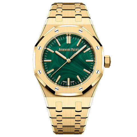 蓄光加工を施した18Kイエローゴールドのロイヤル オーク針とアワーマーカー