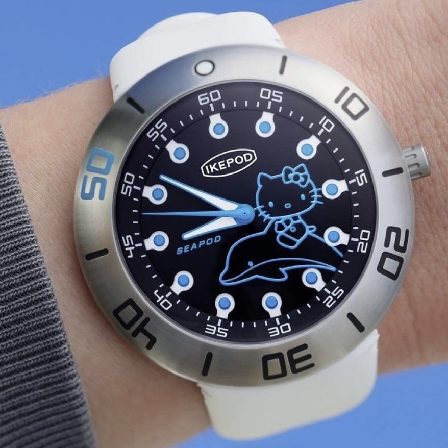 仕様:Hello Kittyが描かれた文字盤、シースルーバック、ベゼル50分位置のシーブルーマーク、特別納品BOX
