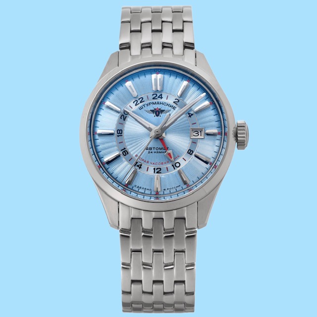 仕様:サンレイ文字盤、デイト、裏蓋にレオーノフの宇宙遊泳シーン刻印、GMT、スーパールミノバ