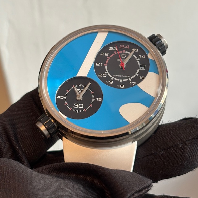 仕様:世界1本限定、タイムゾーン表示、F1マシンのボディをウォータジェットカッターでくり抜いて使用