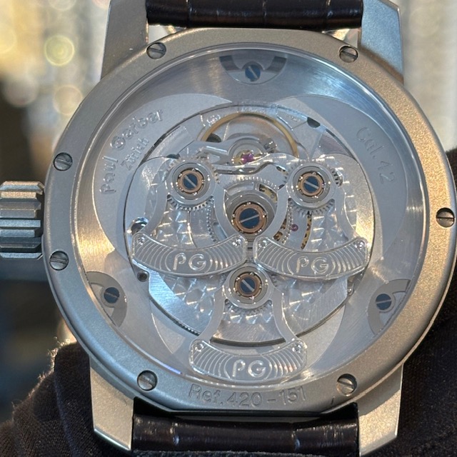 仕様:パワーリザーブ約38時間時間、24時間計、シースルーバック、デイト、プラチナトリプルローター