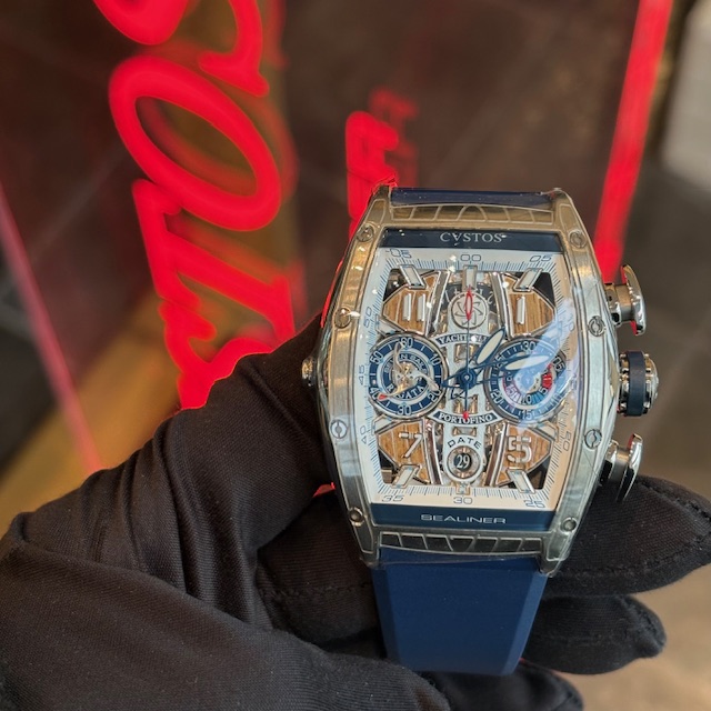 仕様:世界限定50本、デイト、フォールディングバックル、ねじ込み式リューズ、シースルーバック、スモールセコンド、クロノグラフ(クロノグラフ秒針、30分積算計)