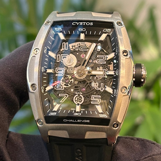 仕様:デイト、フォールディングバックル、ねじ込み式リューズ、シースルーバック、スケルトン