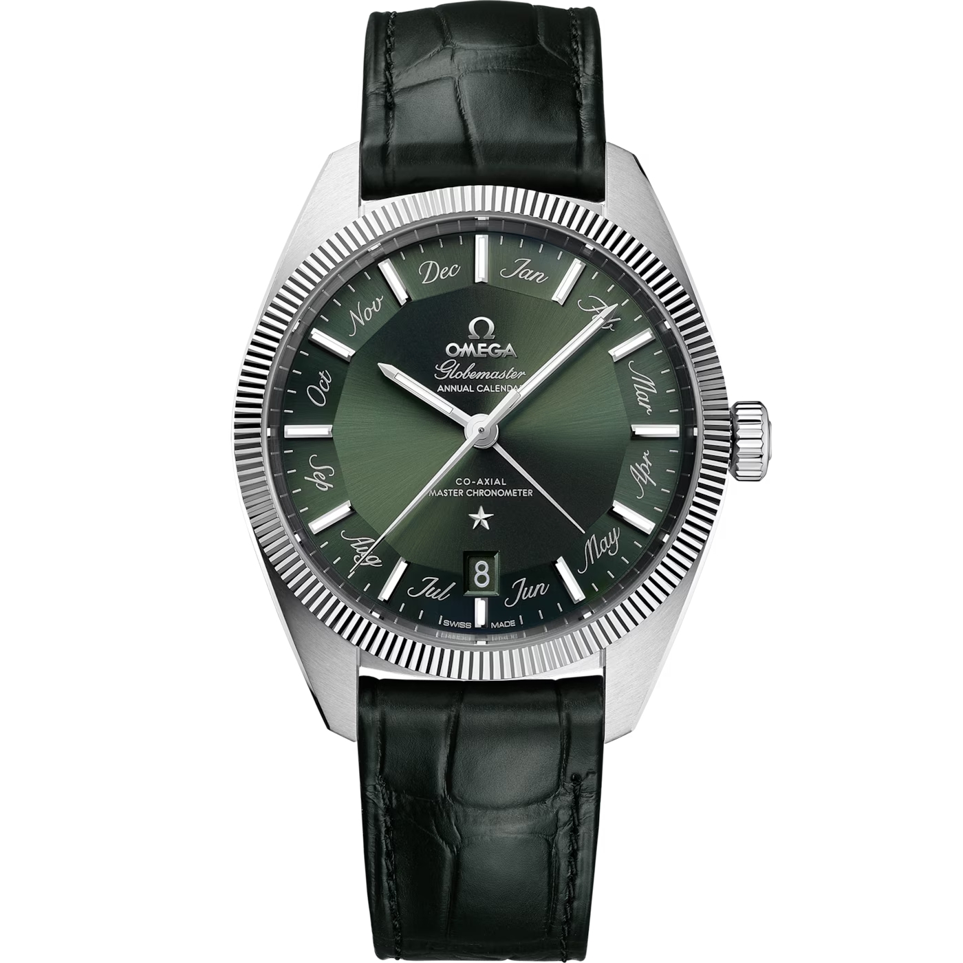 グリーンのレザーストラップが付属、革新的な耐磁性テクノロジーが投入されたコーアクシャル マスター クロノメーター アニュアルカレンダー キャリバー8922搭載。