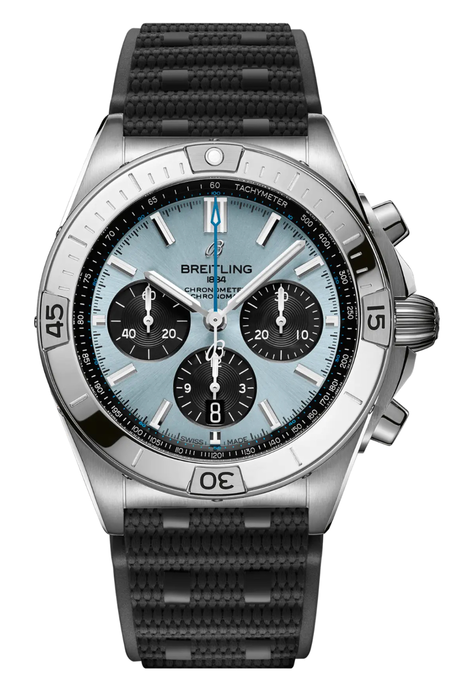 ステンレススチールから18Kレッドゴールドまで、種々の素材を揃えたクロノマットの特徴は、42 mmケースと4カ所にライダータブを配したアイコニックなベゼル。ダイヤルには豊富なカラーをご用意。クロノマットには独特な「ルーロー」ブレスレット(メタル製またはラバー製)がしっくりと馴染みます。クロノマットの駆動はCOSC公認クロノメーターのブライトリング マニュファクチュール キャリバー01です。