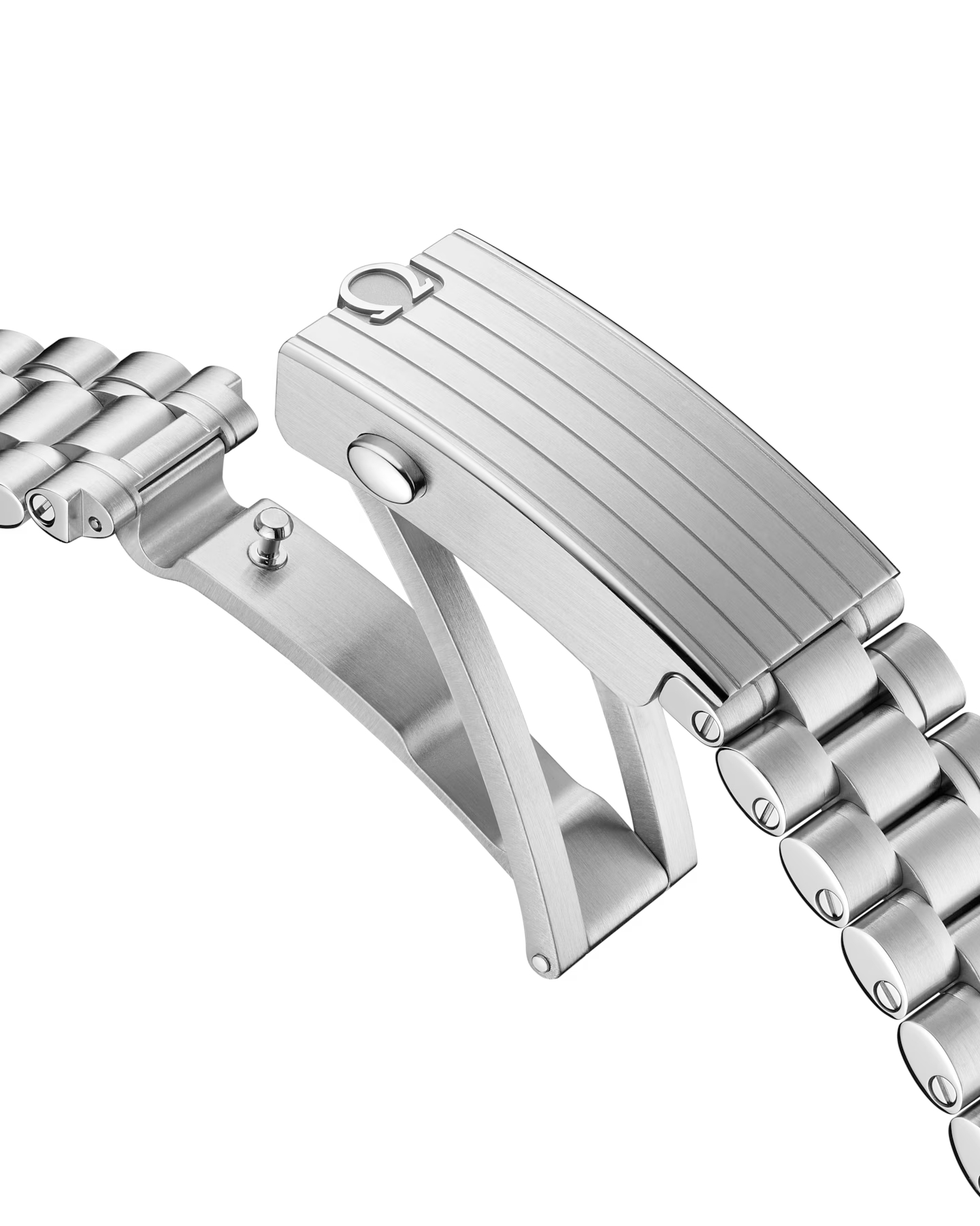 アーチ型リンク5つで一列を構成するブレスレットが付属する、この42 mmの18Kカノープス™ゴールド製ムーンウォッチは、フロントとケースバックにサファイアクリスタルガラスが採用されています。月面で着用された第4世代のスピードマスターのデザインからインスピレーションを得たこのモデルも、非対称ケース、段差を設けたサンブラッシュ仕上げのシルバーダイアル、陽極酸化処理を施したアルミニウム製ベゼルリングに配された有名な「ドットオーバー90」(90の数字の上にドット)を採用しています。