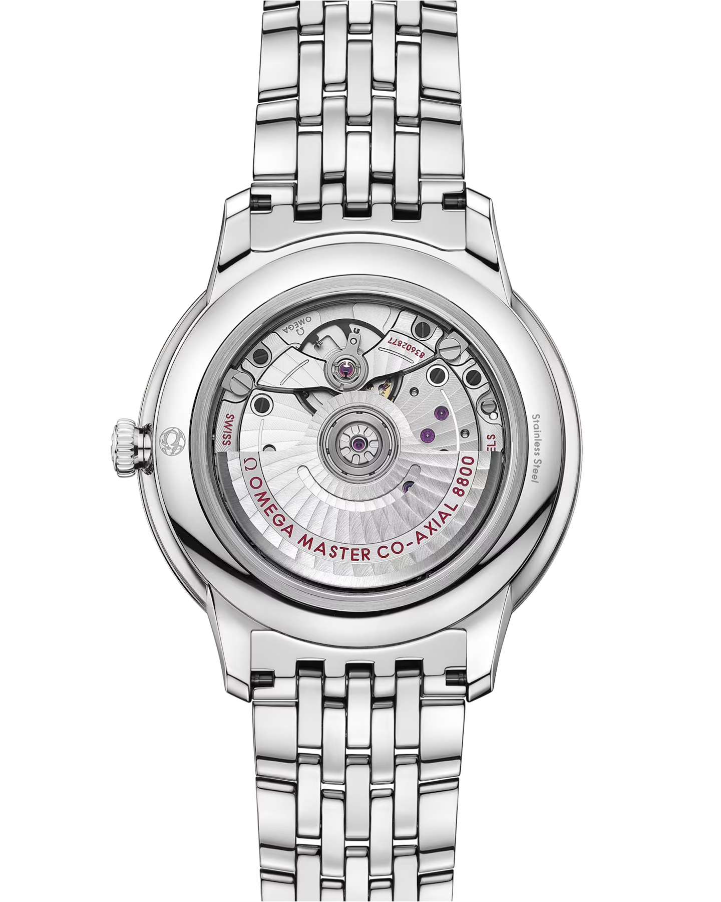 マスター クロノメーター認定を取得したこの時計は、ステンレススティール製ブレスレットを備え、傷の付きにくいサファイアクリスタル製ケースバックからオメガ マスター コーアクシャル キャリバー8800を眺めることができます。