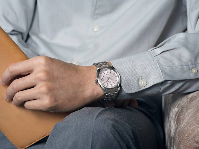 1967年に発売されたグランドセイコー史上初の自動巻メカニカルモデル「62GS」のデザインを現代的にアレンジし、日本特有の季節の移ろいをダイヤルに宿したモデルです。このモデルのダイヤルに表現されたのは、桜の花を雪が覆い隠す情景。桜と雪が共存する「桜隠し」と呼ばれる珍しいその現象は、グランドセイコーの機械式モデルの製造元「グランドセイコースタジオ 雫石」が位置する東北地方で春のはじまりに見られる美しい風景です。ムーブメントには毎秒 10 振動のハイビートムーブメント「キャリバー9S85」を搭載し、精度のばらつきを抑え、より安定した高精度を実現しています。ケース径38mmのサイズ感に加え、ケースとブレスレットには通常のチタンよりも傷つきにくく、白く美しいブライトチタンを採用し、心地よい装着感を創出しました。