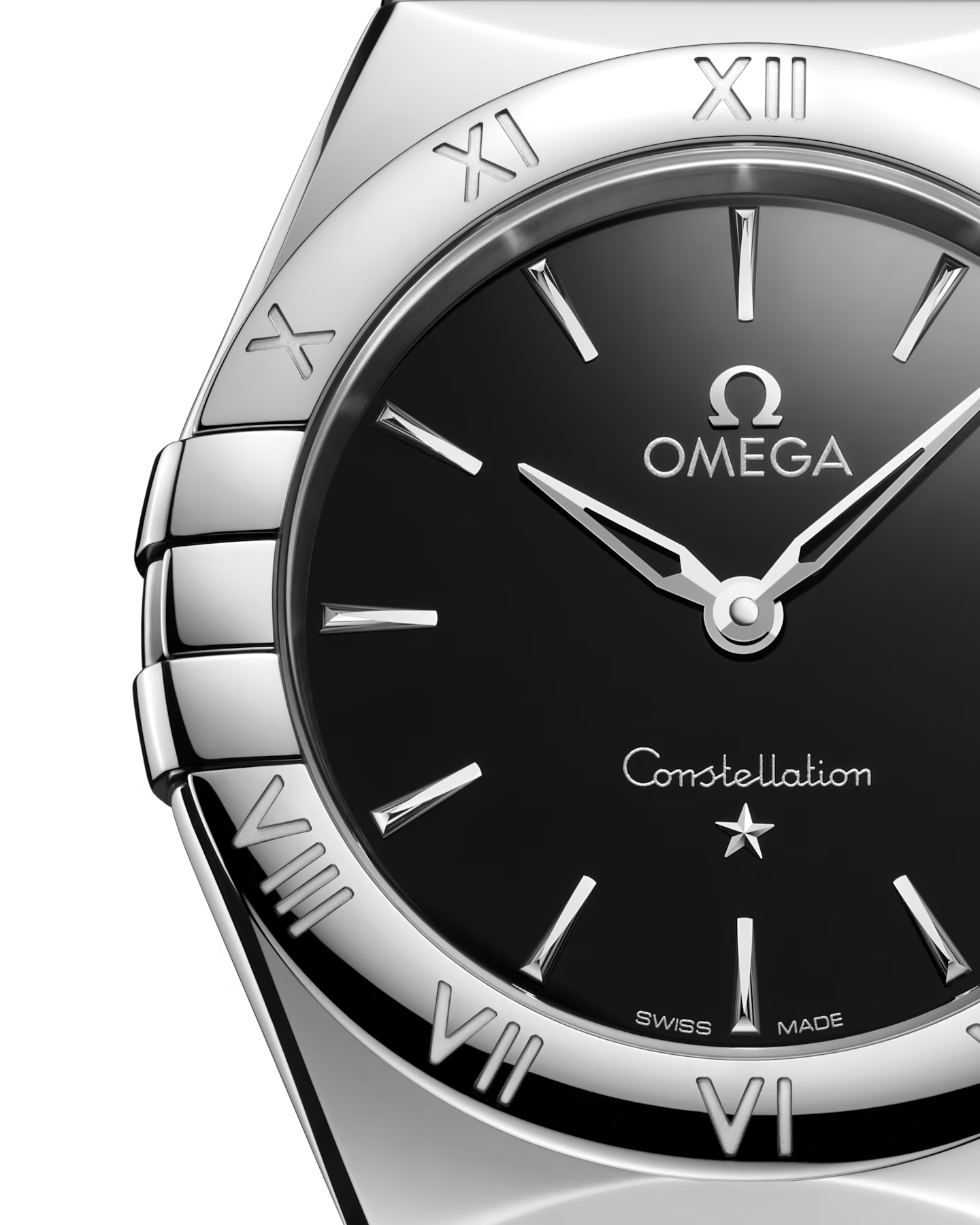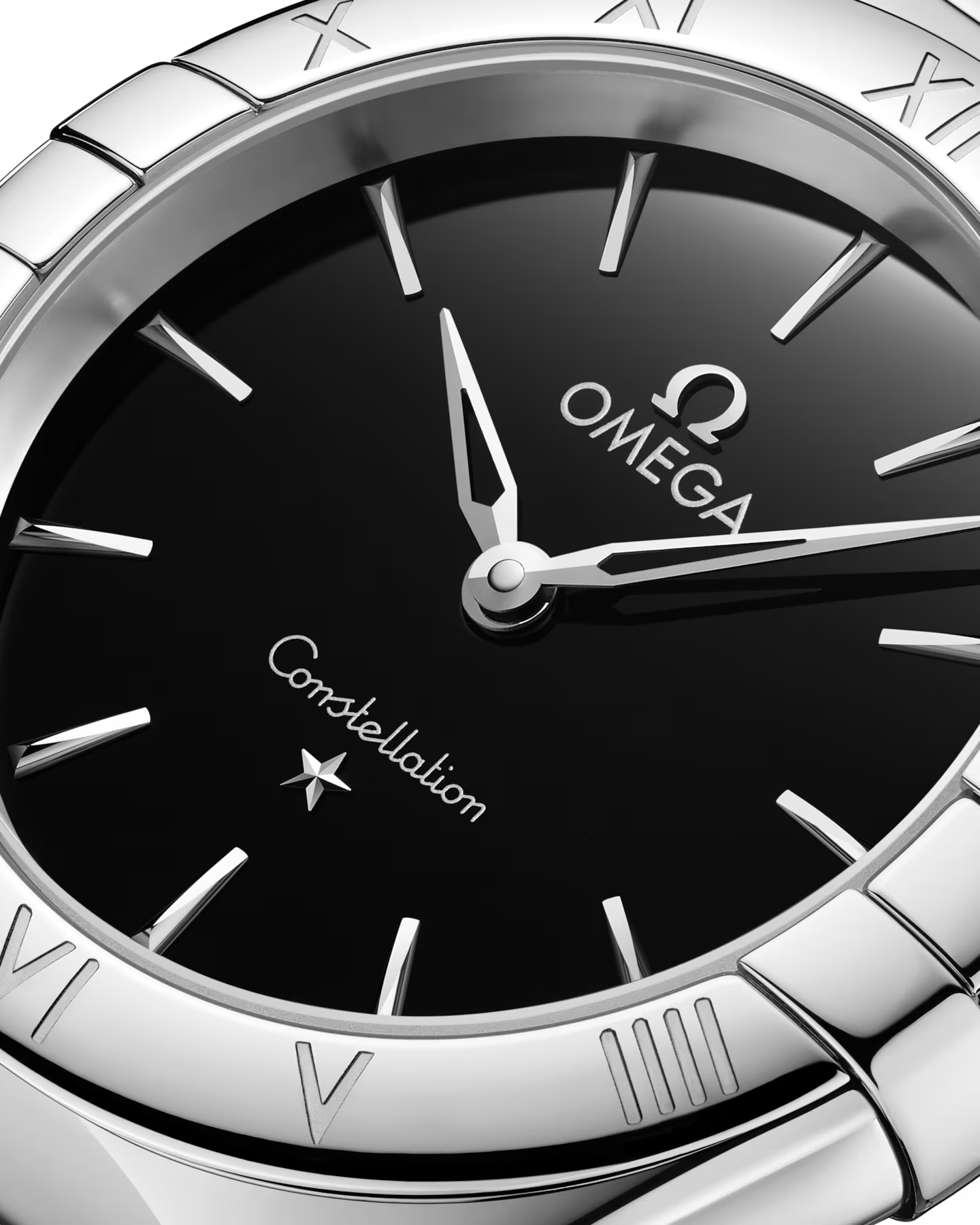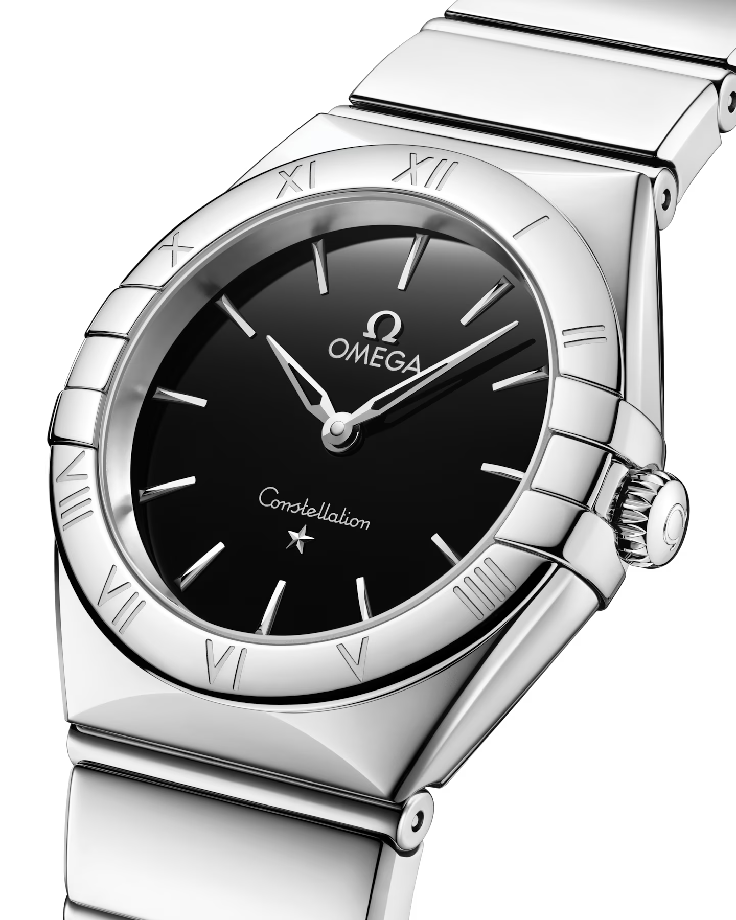 星にインスピレーションを得た、高精度を象徴するウォッチ「コンステレーション」。ケースに施されたハーフムーンファセットと左右にあるポリッシュ仕上げの爪が特徴です。