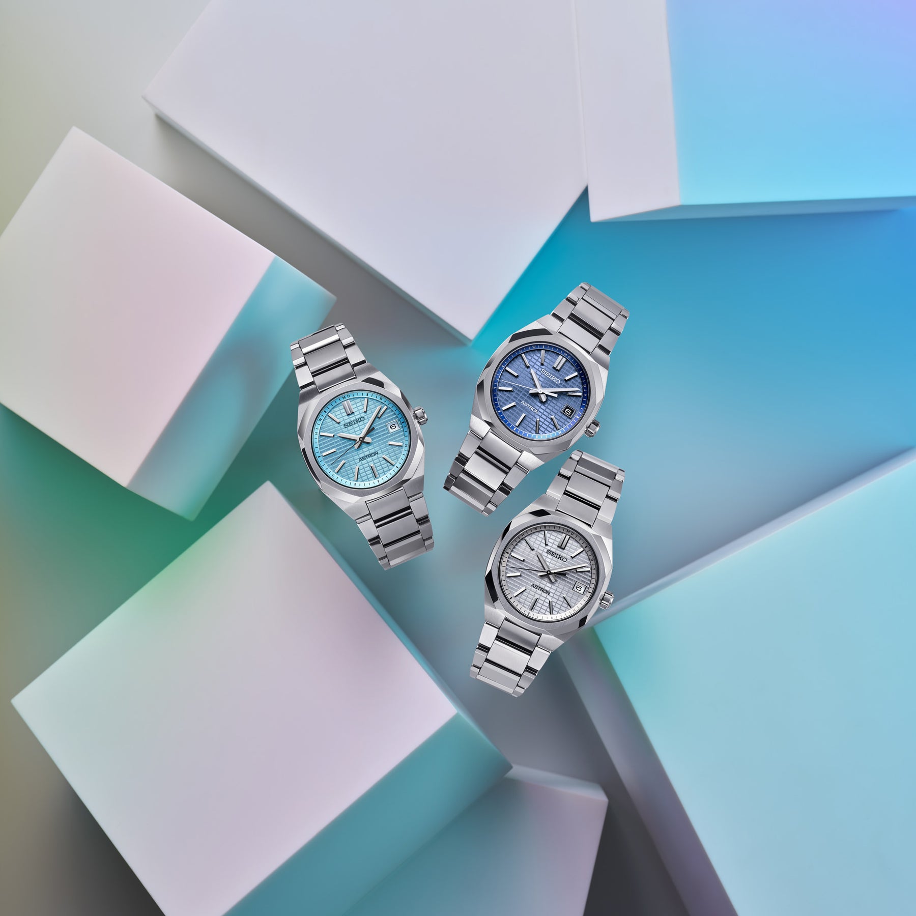 多面カットを施したインデックスと三面カットの時分針、爽やかでトレンド感のあるミントブルーダイヤルには緻密なクリスタルボックスパターンを採用することで、コンパクトサイズならではの高級感のあるデザインです。