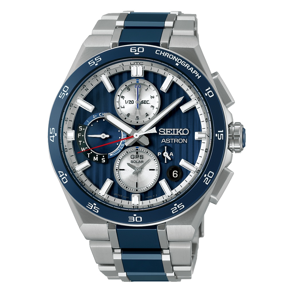 Nexterシリーズのレギュラーモデルとしては初めて、ベゼル、ブレスレット中駒、りゅうずトップにブルーセラミックスを採用しています。ベースダイヤルとサブダイヤルには色が異なるコントラストの効いたダイヤルカラーを採用し、ブルーとホワイトシルバーのコンビネーションが精悍かつ爽やかな雰囲気を演出します。