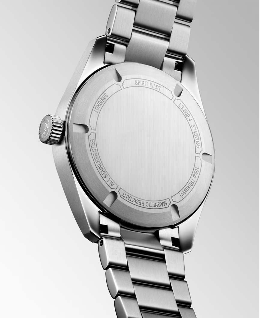ねじ込み式リューズ, 10気圧防水, スクラッチレジスタント サファイヤクリスタル、両面に複層無反射コーティング.