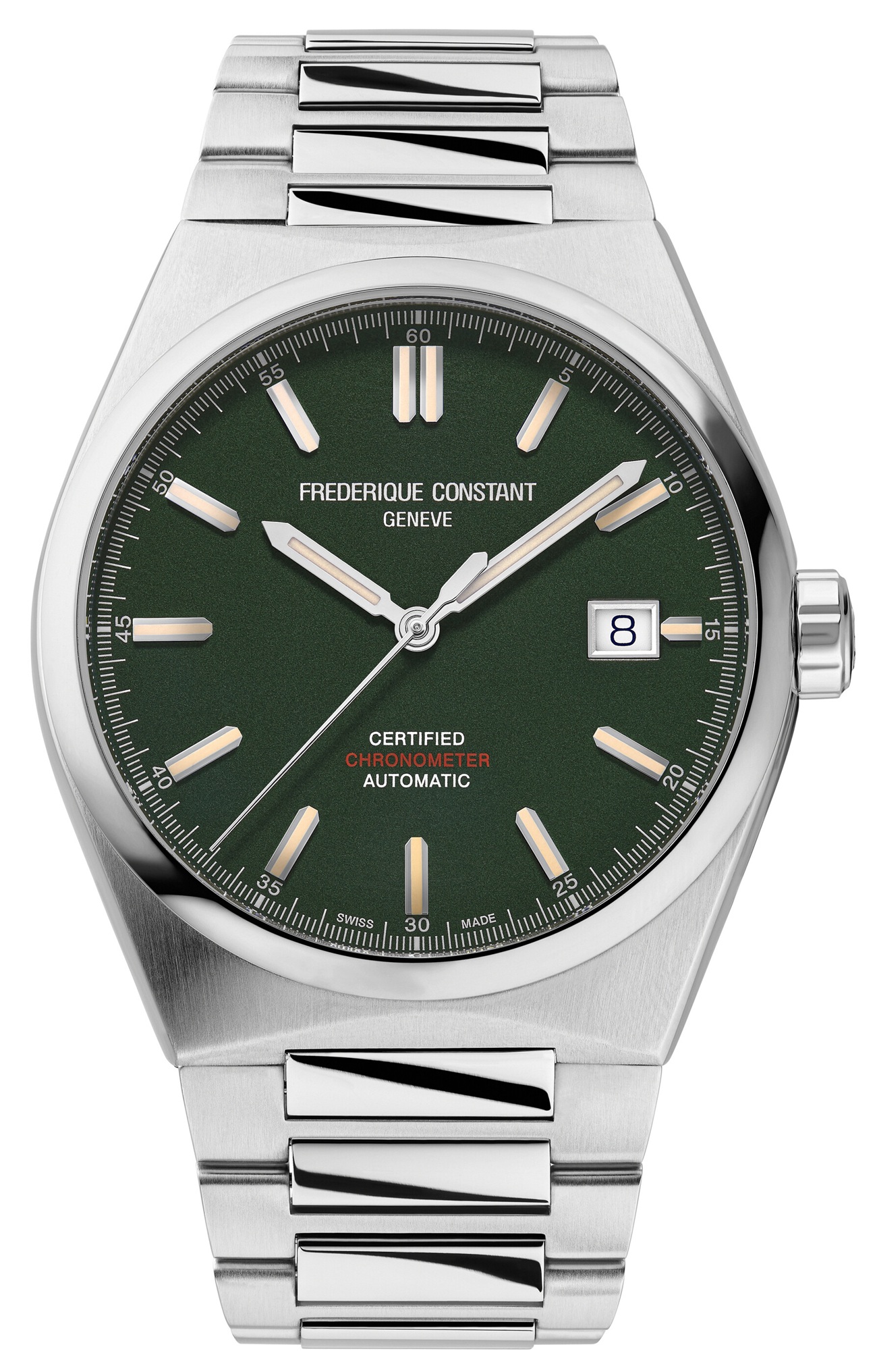 39mmケースと小ぶりになった、フレデリック・コンスタントCOSC認定ライン。COSCは数々の試験を実施し、その基準に合格した時計にのみクロノメーター認定証を発行しています。認定時計は高精度を誇り、ISOに規定された誤差内に収まる精度を有します。文字盤にCERTIFIED CHRONOMETERと記されています。まさに、フレデリック・コンスタントの高精度追求の証となる、タイムピースです。グリーン文字盤に合わせ、グリーンカラーのインターチェンジャブル仕様の替えヌバックストラップが付属し、簡単に付け替えが楽しめます。