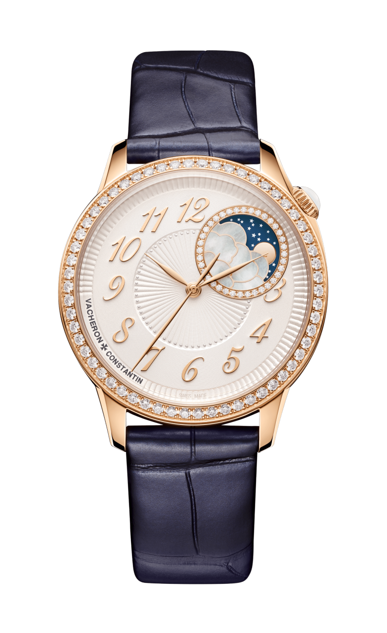 また、ムーンフェイズとしてマザーオブパール象嵌の雲の向こうに表される優雅な月の満ち欠けを表現しております。