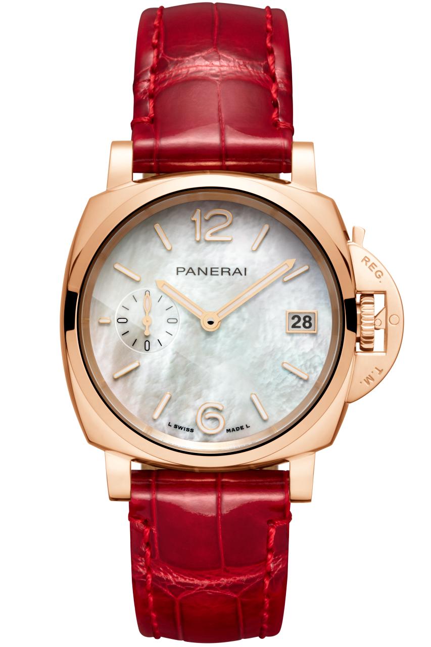 ブランドアイコンとも言えるルミノールコレクション、その美しさはそのままにより現代的な機能を備えるルミノールドゥエコレクション。その中からブランド初となる虹色に輝くマザーオブパールの文字盤を備え、コレクション中最も洗練されたモデル、ピッコロドゥエ・マドレペルラが誕生しました。貴重な素材を使用した文字盤には金色の針とインデックスが配置され、視認性の高いデザインや暗闇の中で美しく発光する夜行塗料が使用されるなど、エレガントな存在でありながら実用性を兼ね備えたパネライの真髄を表現しています。