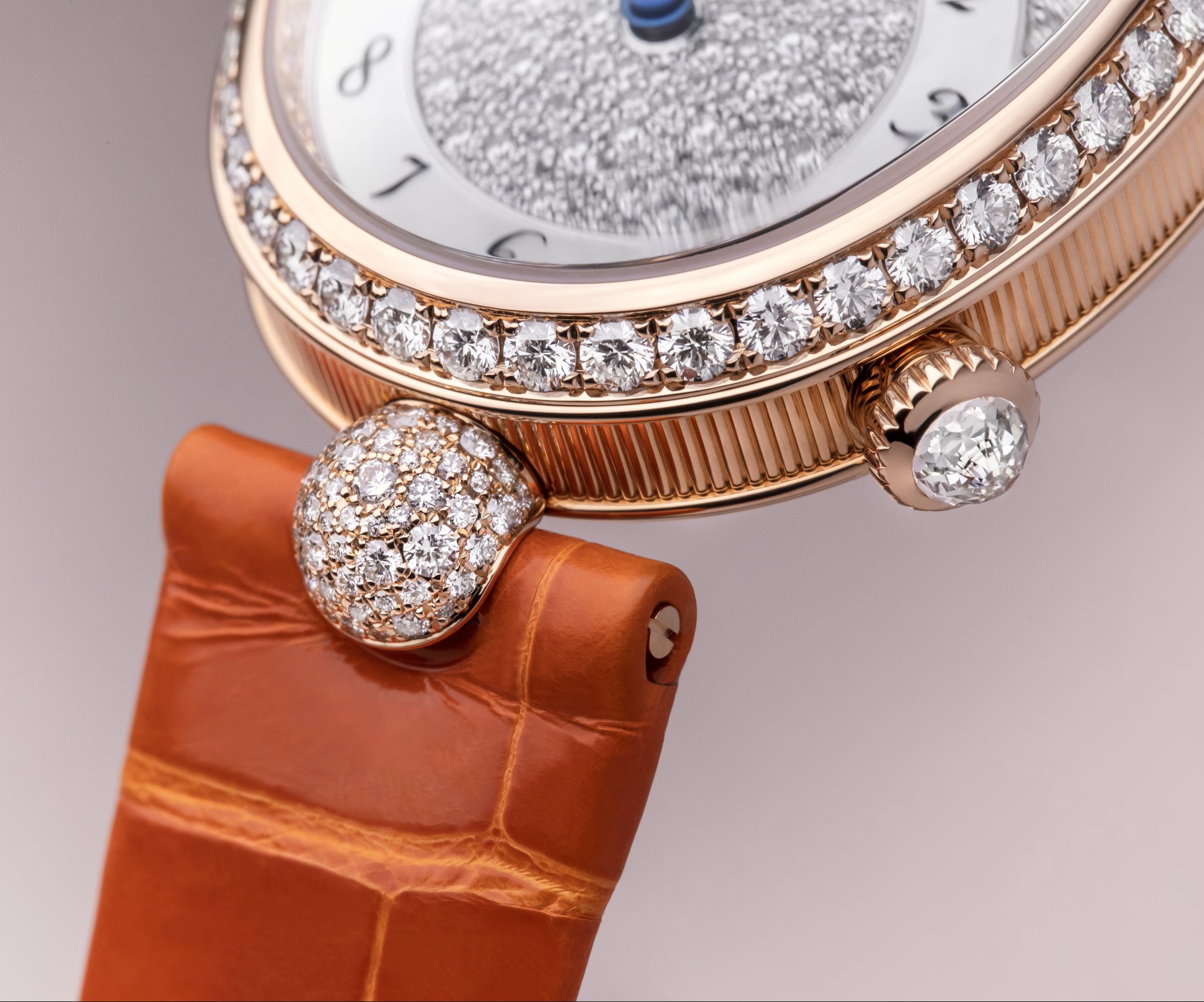 ブレゲの時計職人は、今までと変わらぬ入念で精緻な技術で、現代のジュエリー・ウォッチに洗練された女性的なシンボルを創りあげました。
