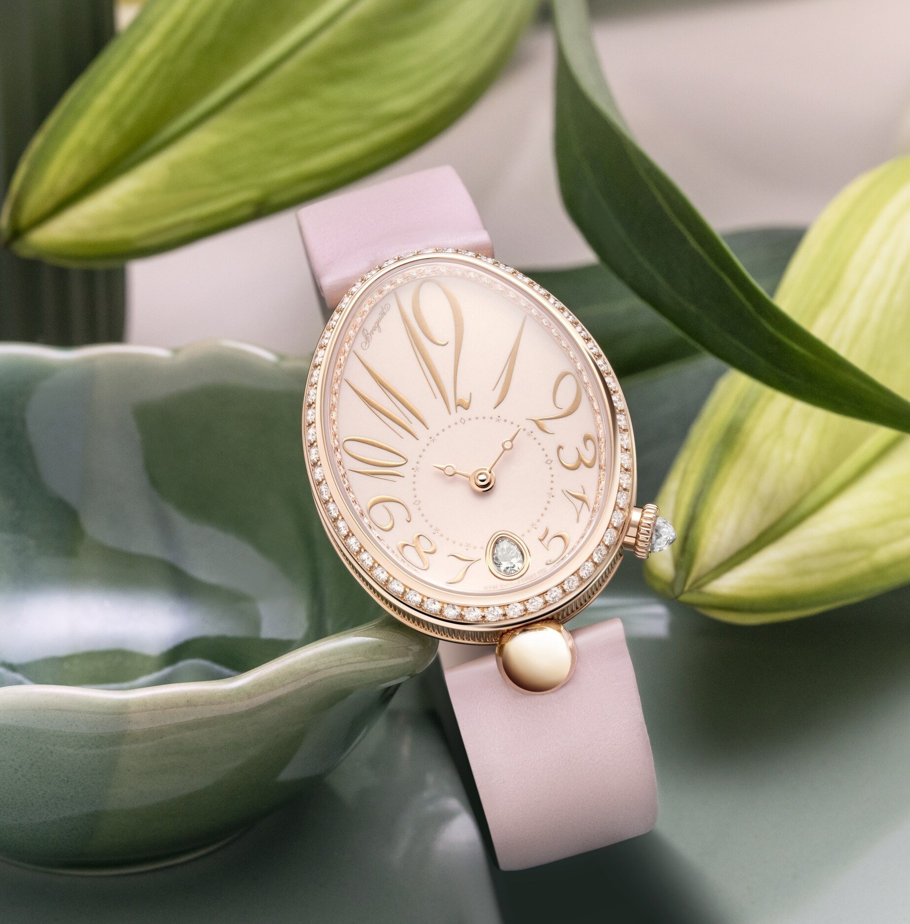 ブレゲの時計職人は、今までと変わらぬ入念で精緻な技術で、現代のジュエリー・ウォッチに洗練された女性的なシンボルを創りあげました。