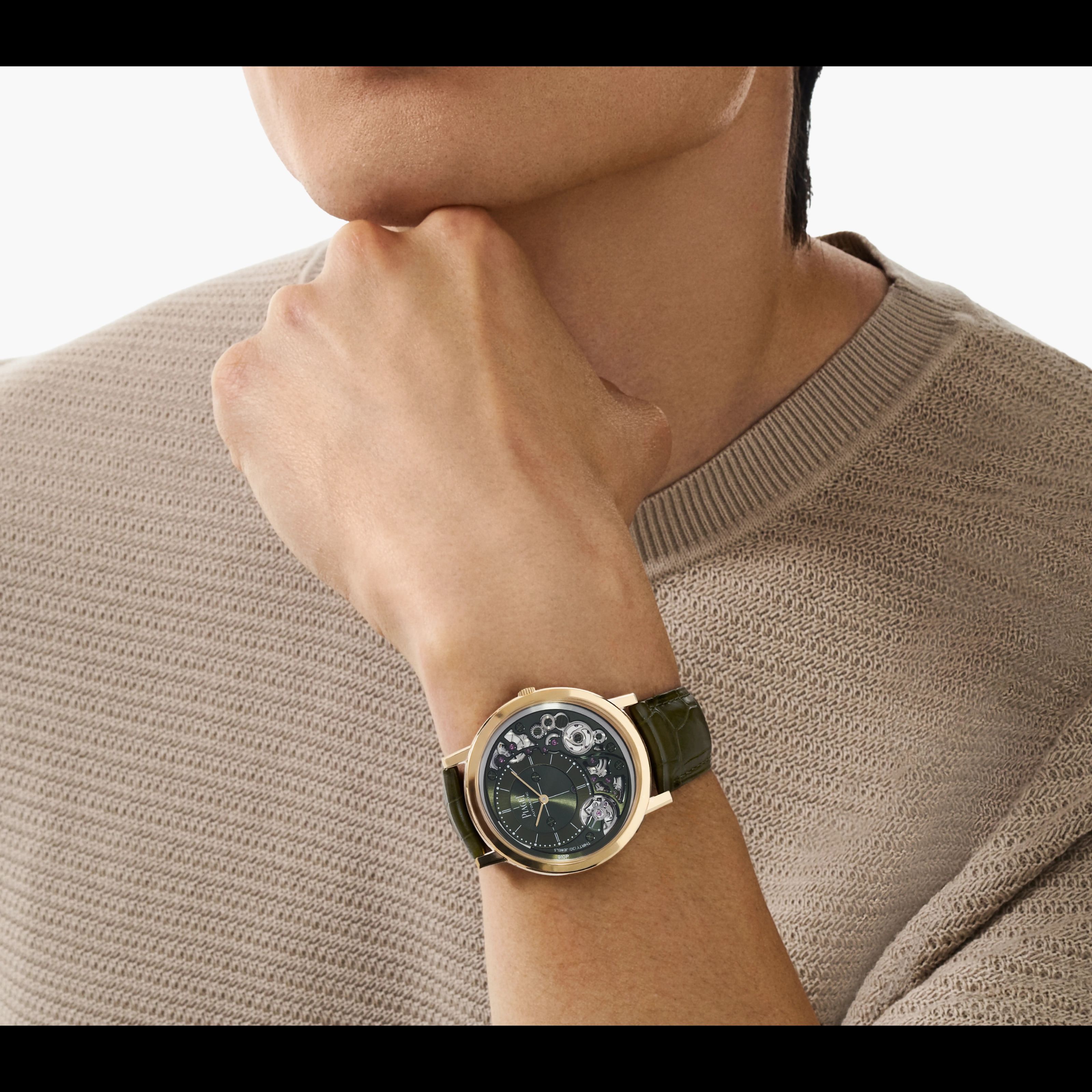グリーンのアリゲーターストラップと組み合わせた新開発のグリーンダイヤル。