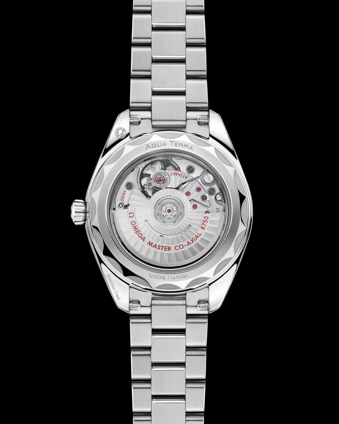 オメガと海の豊かな歴史にオマージュを捧げる「シーマスター アクアテラ」。30mmのスリムなこのモデルは、洗練されたスタイルに、スイス連邦計量・認定局(METAS)認定の業界最高水準を誇るオメガ の革新的コーアクシャルマスター クロノメーター キャリバー8750を搭載しています。