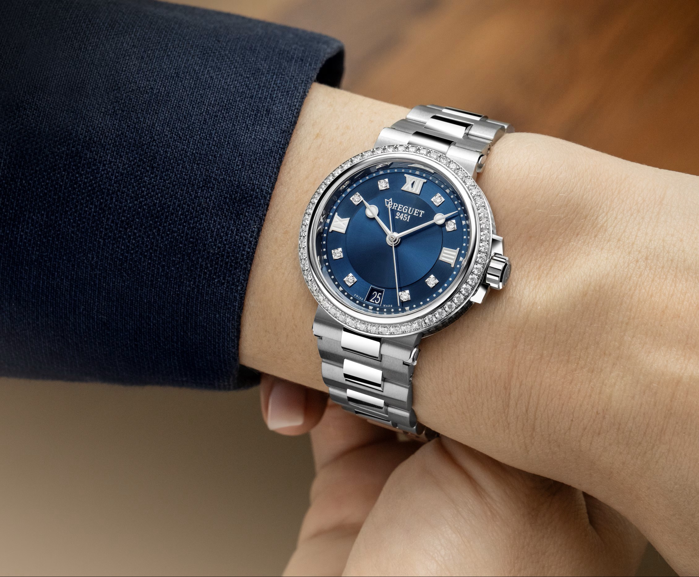 ブリリアントカットダイヤモンドがベゼルを飾り、文字盤を優美に包み込みます。ケースの素材と文字盤の仕上げによってその個性は変わりますが、いくつもの繊細なディテールを備えた、確固たるスタイルを呈したウォッチであることに変わりはありません。サファイア・ケースバック(透明裏蓋)からうかがえる自動巻きムーブメントのローターには、モデルによってダイヤモンドセッティングが施されています。