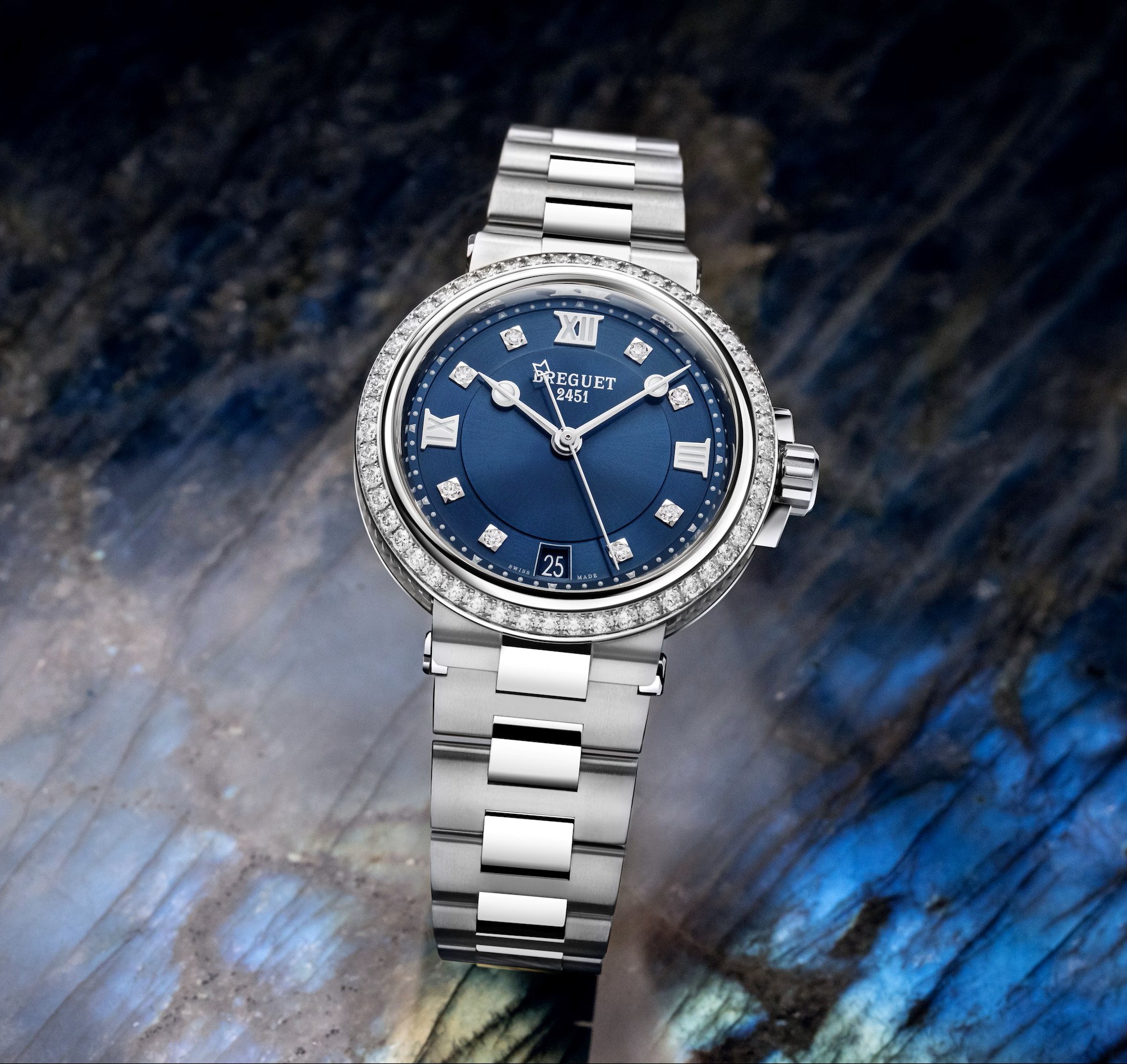 ダイアル:サンバースト仕上げ/ガルバニックブルー文字盤